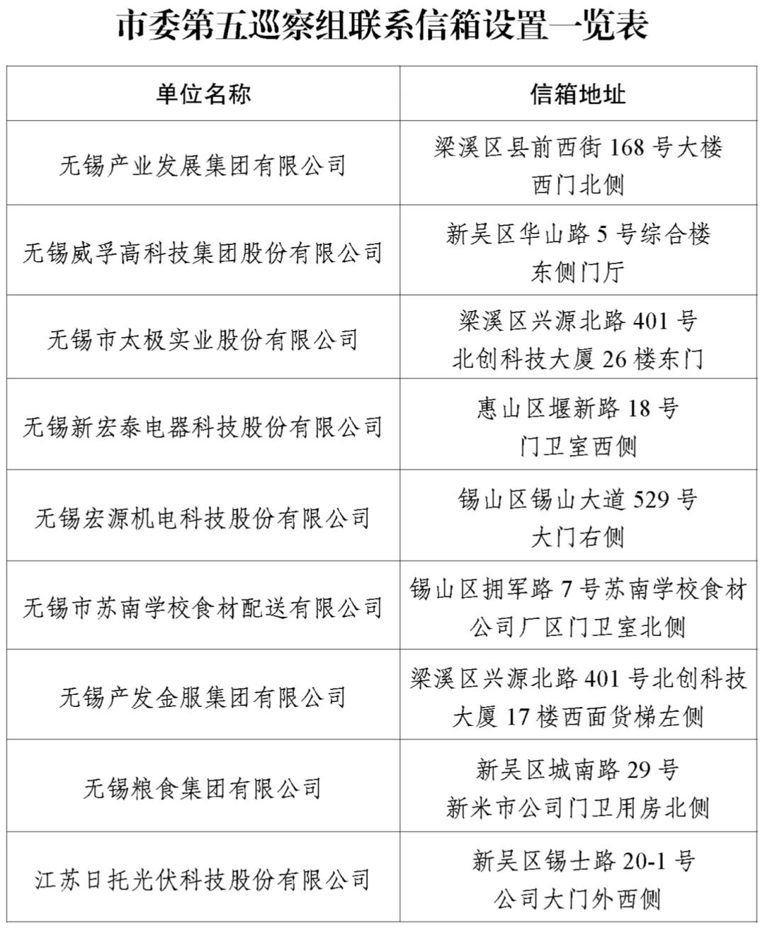 市委巡察公告 根據(jù)市委巡察工作領(lǐng)導(dǎo)小組統(tǒng)一部署,市委第五巡察組對無錫產(chǎn)業(yè)發(fā)展集團(tuán)有限公司黨委開展常規(guī)巡察,時間為2024年4月25日至7月5日。根據(jù)有關(guān)規(guī)定,市委巡察組主要受理反映無錫產(chǎn)業(yè)發(fā)展集團(tuán)有限公司黨委領(lǐng)導(dǎo)班子及其成員、下一級主要負(fù)責(zé)人以及相關(guān)重點崗位干部(含已離退休、已調(diào)離)的來信來電來訪。其他不屬于巡察受理范圍的信訪問題,將按規(guī)定轉(zhuǎn)交有關(guān)部門認(rèn)真辦理。市委巡察組受理信訪時間截止到2024年7月2日。 巡察期間設(shè)專門舉報電話:18800559869,可同時接收短信、微信,接聽時間為工作日8:00-18:00; 郵政信箱:江蘇省無錫市0450號郵政信箱; 郵政編碼:214031; 聯(lián)系信箱:無錫產(chǎn)業(yè)發(fā)展集團(tuán)有限公司(梁溪區(qū)縣前西街168號)大樓西門北側(cè)。 特此公告。 中共無錫市委第五巡察組 2024年4月25日 ![]() ![]() |
