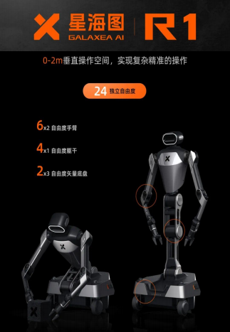 近日,在世界機(jī)器人大會(huì)上,星海圖首次公開(kāi)了從硬件到軟件完全自主正向研發(fā)的全尺寸輪式雙臂具身本體R1,能夠有效執(zhí)行全場(chǎng)景、全地形、全空間的通過(guò),完成搬箱子、撿零件、開(kāi)關(guān)門、按按鈕等操作任務(wù)。